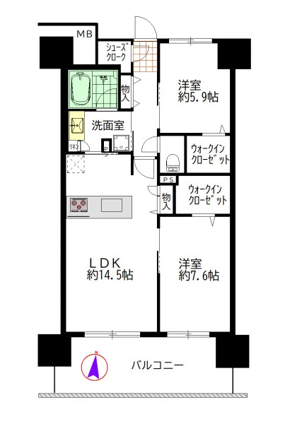 間取り | 2LDK | 間取り向き | 南 |