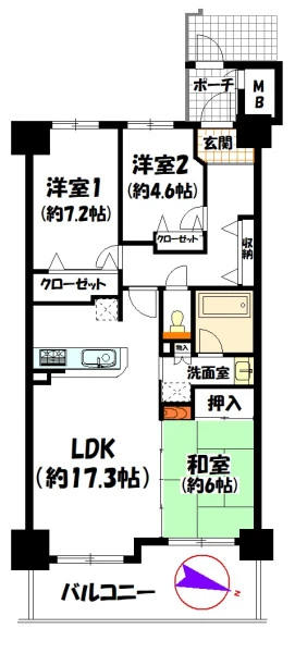 | バルコニー面積 | 9.98㎡ | バルコニー向き | 東 |