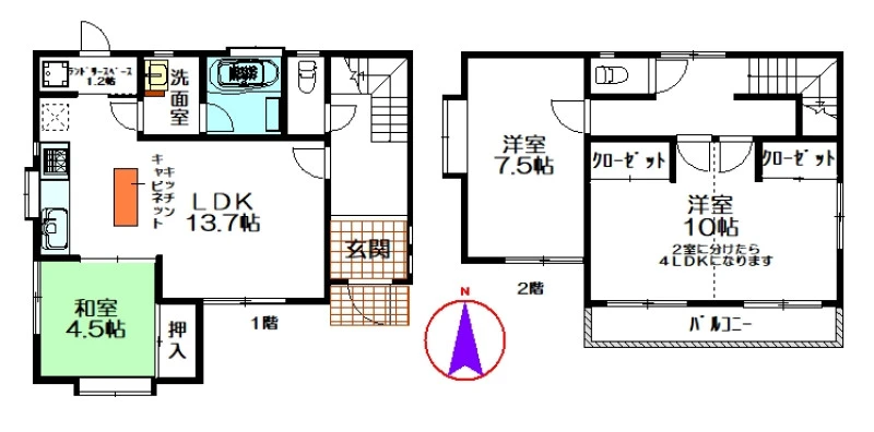 2階洋室を2つに分けることで、4LDKにすることができます!