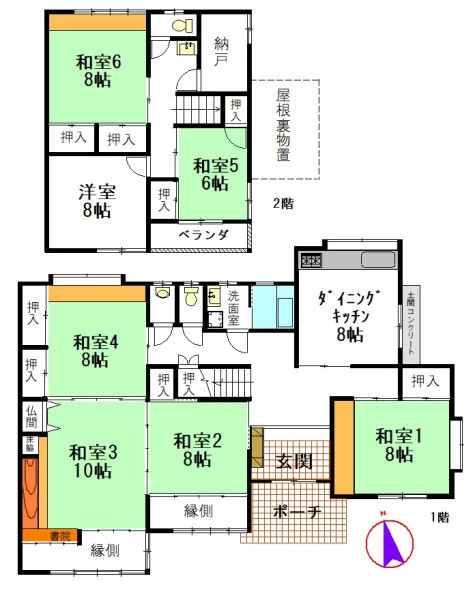 | 特徴 | 2面採光、整形地、閑静な住宅街、《現況渡し》7DK+納戸+車庫(2台分・電動シャッター付) 広々とした和室が豊富にある7DKの邸宅!南側にはお庭を眺める縁側があります♪ | ||