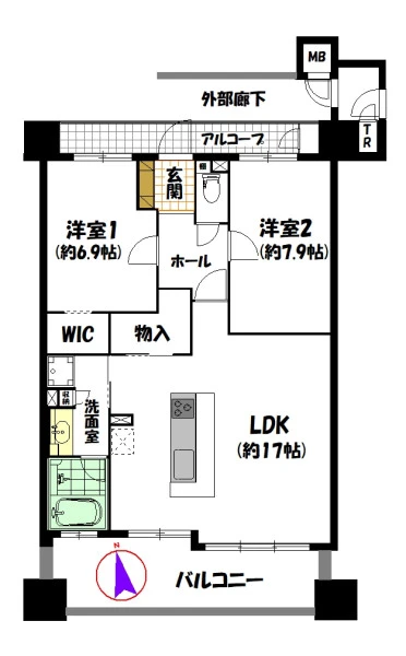 | バルコニー面積 | 14.29㎡ | バルコニー向き | 南 |