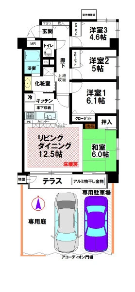 | 間取り | 4LDK | 間取り向き | 南 (角部屋) |