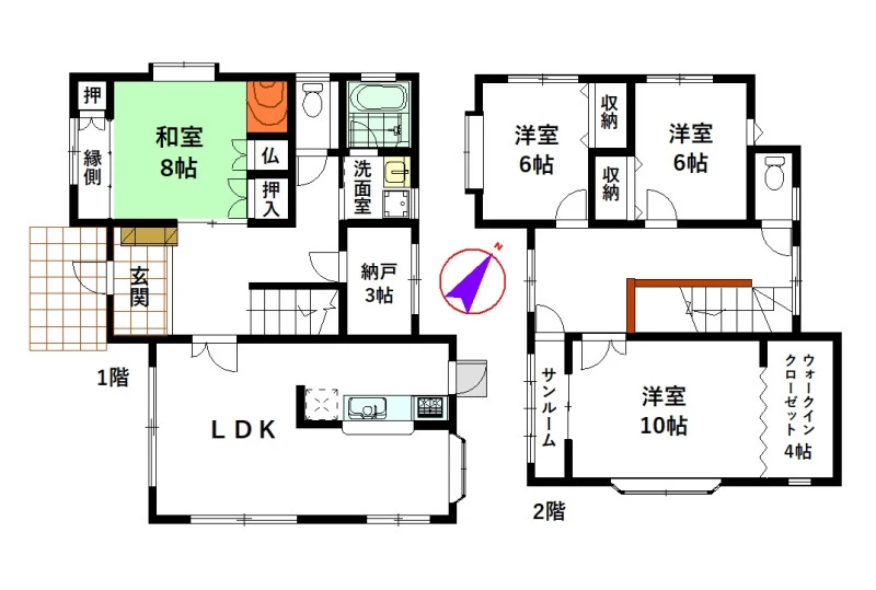| 設備 | 上水道、下水道、都市ガス、電気、IHクッキングヒーター、側溝、エアコン、照明器具付き、駐車3台以上可、システムキッチン、食器洗浄乾燥機、浴室1坪以上、追焚機能、浴室暖房、トイレ2箇所、温水洗浄便座、冷房、床下収納、火災警報器等設置済 | ||