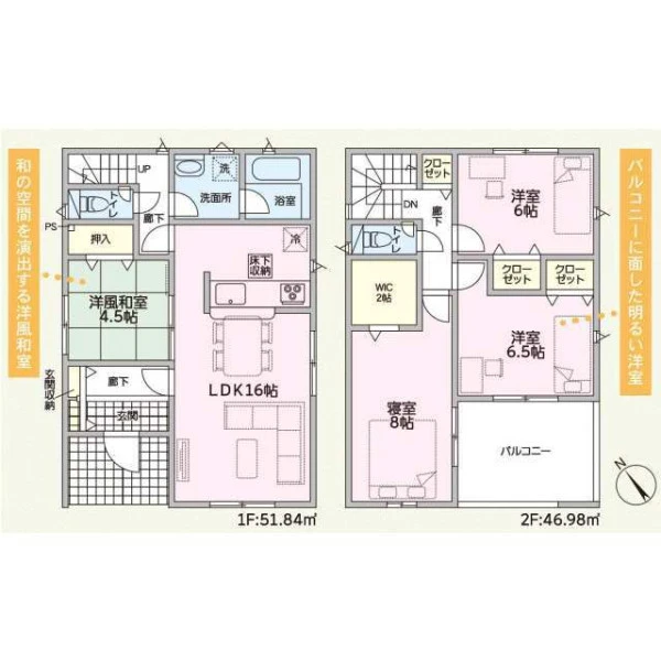 | 設備 | ガスその他、電気、上水道、下水道、システムキッチン、カウンターキッチン、浄水器、IHクッキングヒーター、給湯、トイレ2箇所、温水洗浄便座、シャンプードレッサー、浴室乾燥機、フローリング、複層ガラス、ルーフバルコニー、オール電化、収納スペース、ウォークインクローゼット、床下収納、ディンプルキー、モニタ付インターホン、火災警報器等設置済、建設住宅性能評価取得(予定含む) | ||