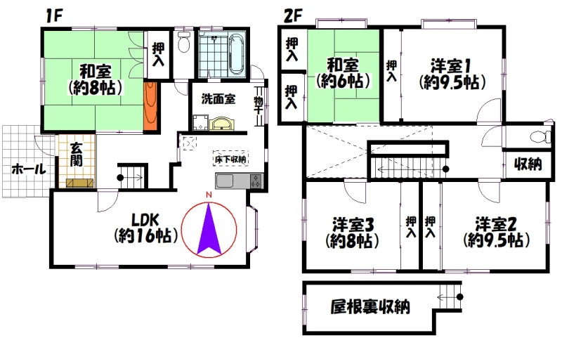 | 特徴 | 2面採光、閑静な住宅街、整形地、5SLDK+屋根裏収納。約80坪の広々とした敷地で、ゆとりある暮らしが叶います。動きやすい生活動線に水回りを集約し、家事効率を高めた設計です!大阪屋ショップやウエルシアが徒歩圏内で日々の買い物も便利。 | ||