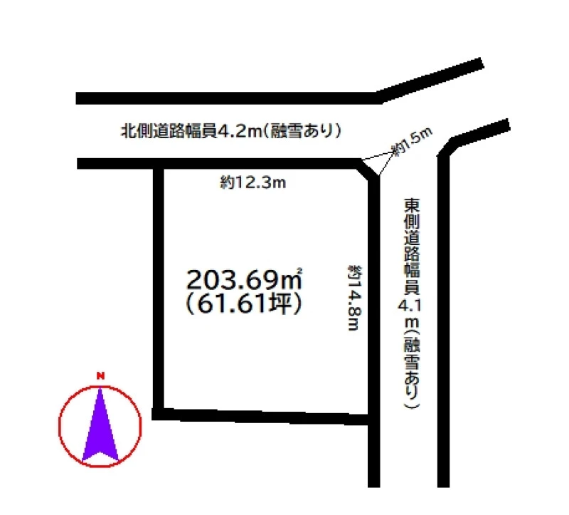 ・道路/北側道路幅員4.2m(融雪あり)/東側通路幅員4.1m(融雪あり)