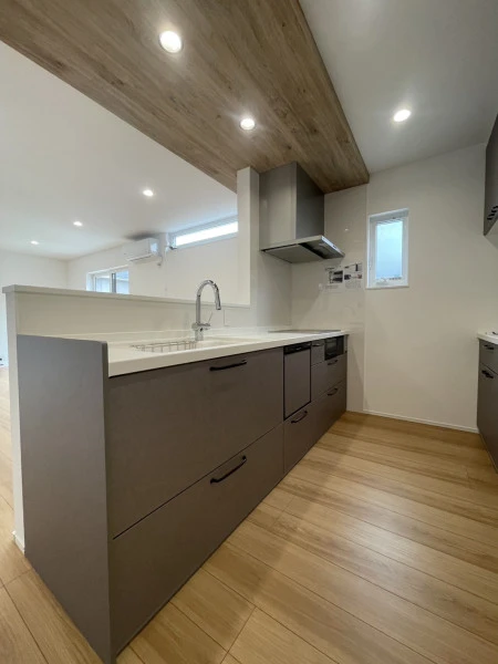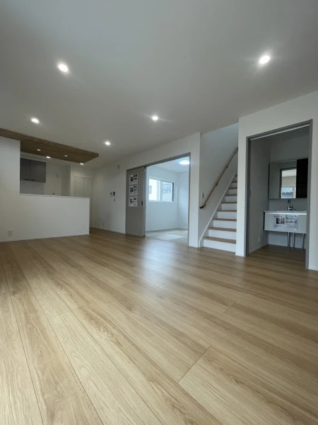 オートバス、追焚機能、シャワー付洗面化粧台、温水洗浄便座、トイレ2ヶ所、システムキッチン、食器洗浄乾燥機、IHクッキングヒーター、3口以上コンロ、全居室収納、ウォークインクローゼット、エアコン2台以上、シューズインクローゼット、ディンプルキー、省エネ給湯器、全居室フローリング、上水道、下水道、エアコン、ダウンライト、照明器具、複層ガラス