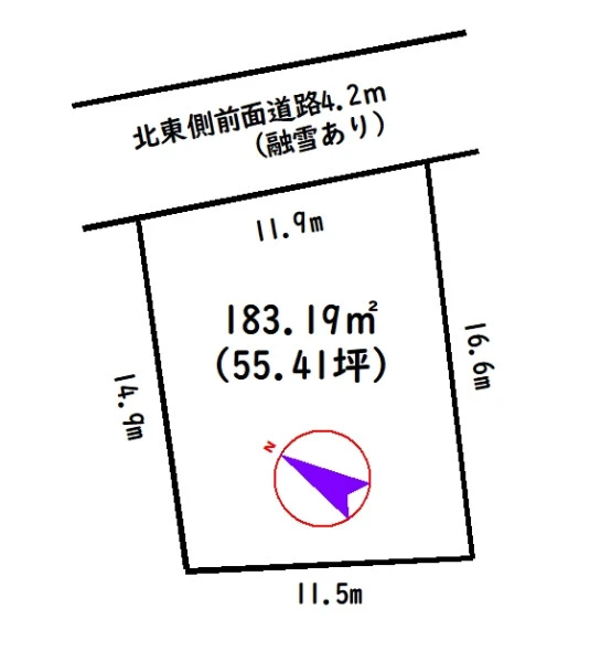 | 特徴 | 整形地、山室中部小学校まで徒歩6分!前面道路には融雪装置が付いています♪ 整形地!建築条件なし! | ||